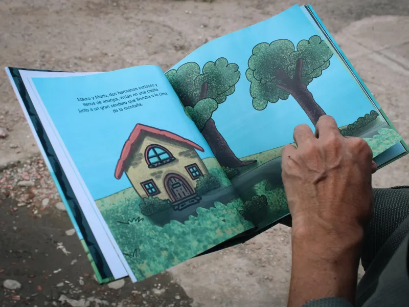 De esta manera, con las herramientas del taller y los insumos obtenidos de los niños, se crearon tres libros ilustrados cuya temática central fue la identidad y el arraigo familiar por el territorio que habitan. “En los talleres artísticos con los niños encontramos todas las historias que sus abuelos o papás les contaban, y allí fue que identificamos: ‘¿Qué nos interesa? Que los niños no pierdan el legado histórico que nos están relatando de sus ancestros. Por ello, abordamos esta temática para los productos que les dejaríamos a la comunidad y que servirían para no dejar perder la identidad y las historias de su territorio”, argumenta el profesor Fernando.